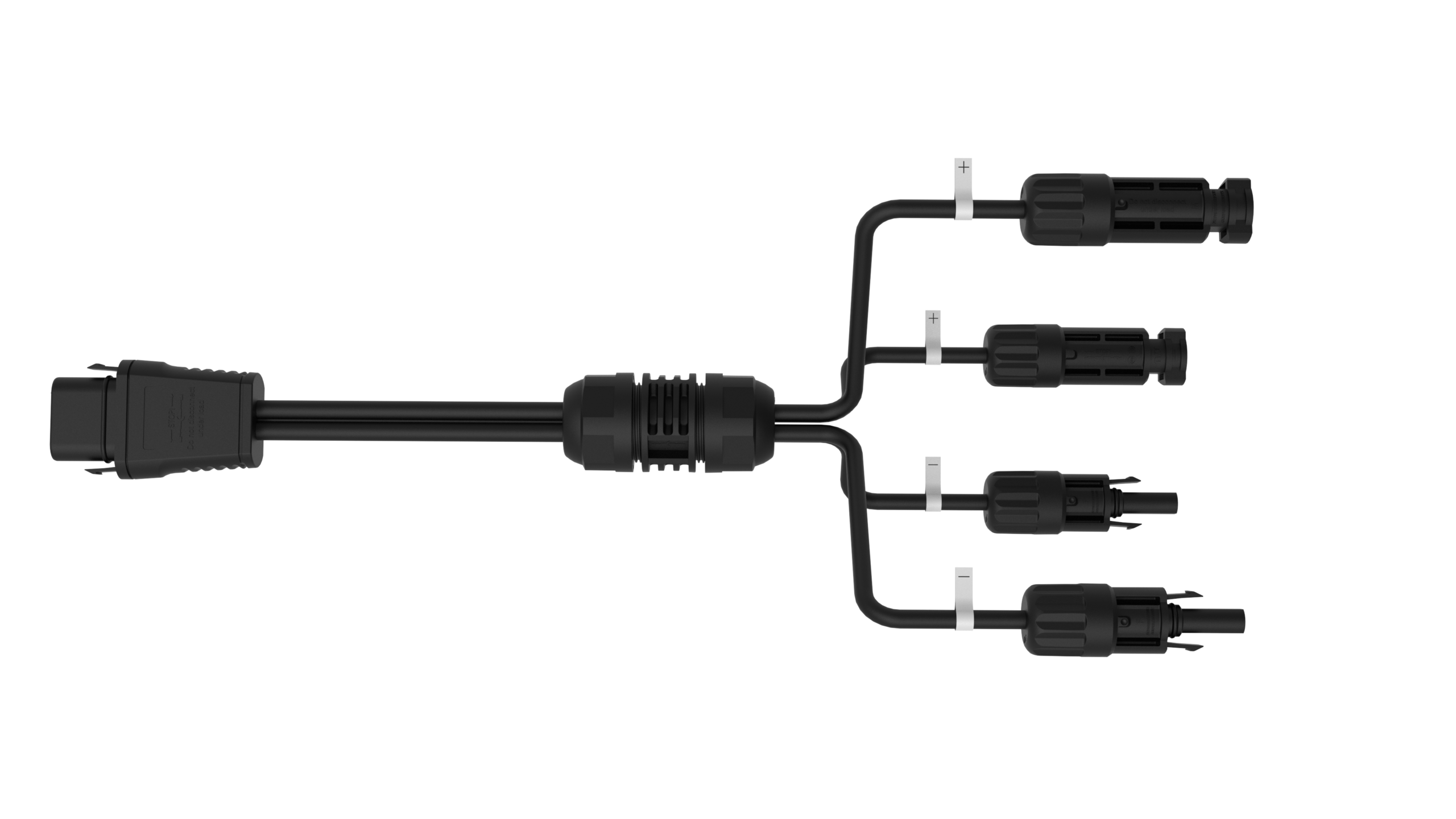 Der positive Pol ist als MC4-Stecker (männlich) ausgeführt. Dadurch wird eine einfache, verpolungssichere Installation ermöglicht.